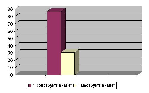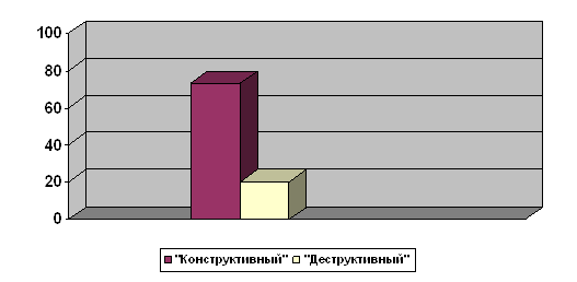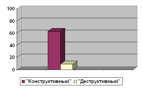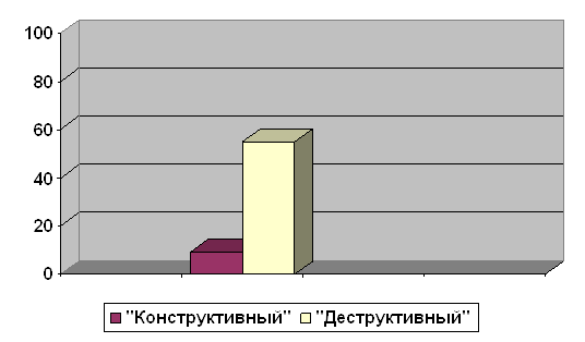 Рис. 6. Выраженность негативного отношения к школе у детей в зависимости от типа родительского отношения к ребенку Детей, родители которых характеризуются «деструктивными» стратегиями, часто наказывают отказом от общения. Дети с заниженной самооценкой вырастают в семьях, где с ними не обучаются, однако спрашивают повиновения; невысоко оценивают, нередко обвиняют, карают, порой - при посторонних; не ждут от них успехов в школе и внушительных достижений в жизни. Отталкиваясь от сказанного, можно сделать вывод, что успеваемость в школе становится одним из главным критерием оценки ребенка как личности со стороны старших и сверстников. Отношение к себе как к ученику в полноценной мере обусловливается семейными ценностями. На первый план у ребенка выходят те его особенности, которые главным образом тревожат его родителей - поддержание авторитета (дома задаются вопросы: «А еще кто заработал пятерку?»), повиновение («А тебя сегодня не ругали?») и т.д. В самосознании школьника смещаются ударения, когда родителей беспокоят не учебные, а повседневные обстоятельства в его школьной жизни («А в классе из окон не дует?», «А что вам подавали на обед?»). Или родителей мало что волнует - школьная жизнь ребенка не обсуждается, а если и обсуждается то только формально. Часто взрослые задают безразличные вопросы: «А что было у вас сегодня в школе интересного?» преждевременно или поздно повергнет к подобающему ответу: «Ничего необычного», «Все стандартно». Также родители задают и исходный уровень притязаний ребенка – именно то, на что он претендует в учебной деятельности и взаимоотношениях. Дети с высокой степенью притязаний, завышенной самооценкой и престижной мотивацией надеются только лишь на успех. И их соображения о существующем так же жизнерадостны. Дети с низкой самооценкой в своей жизни не претендуют на многое. Перед собой они не устанавливают высоких целей и неизменно колеблются в своих потенциалах, стремительно примиряются с тем уровнем успеваемости, который вырабатывается в начале обучения. Анализ и интерпретация полученных эмпирических данных позволяет сделать следующий вывод, подтверждающий гипотезу: если родители характеризуются преобладанием деструктивного типа родительского отношения, то это негативно отразится на качестве успеваемости ребенка в школе. Из этого следует, что конструктивный тип родительского отношения связан с хорошей успеваемостью ребенка в школе при высоких значений ответственности, а деструктивный – с низкой успеваемостью ребенка. Заметим, что респонденты, у родителей которых преобладает конструктивный тип родительского отношения, чувствуют себя комфортно, эмоционально благоприятно в семье. Группа респондентов, родители которых характеризуются преобладанием деструктивного типа родительского отношения к ребенку, чаще испытывают неблагоприятное эмоциональное состояние. Полученные результаты свидетельствуют о том, что доминирование деструктивных стратегий родительского отношения к ребенку негативно сказывается на успеваемости ребенка в школе. Так, повышенная строгость и контроль со стороны родителей препятствуют формированию внутреннего плана оценки собственной деятельности, что ведет к зависимости оценок ребенка от оценок родителей. В этом случае нет условий для формирования у ребен