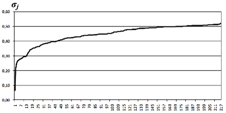 приведен пример графика упорядоченных значений среднеквадратичного отклонения