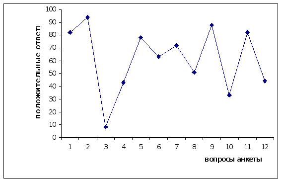 Результаты ответов учащихся на вопросы анкеты представлены на графике1. Г Анализ и график ответов учащихся на вопросы анкеты показал, что 83 % учащихся нравилось посещать спецкурс, причем 94 % школьников посещающих спецкурс, имели возможность узнать новые, до этого неизвестные факты. Лишь немногие (8 %) читали литературу по проблеме белков до посещения занятий. В ходе спецкурса применялись различные формы обучения: лекции, семинарские занятия, выполнение лабораторно-практических работ. 78 % учащихся понравились лекционно-семинарские занятия, а 89 % положительно ответили на вопрос. „Нравилось ли вам выполнять лабораторно практические работы“. При подготовке к семинарам учащиеся самостоятельно работали с литературой, в том числе и научной. Но изучение научной литературы у 63 % школьников вызвало затруднения. 33 % учащихся было трудно самостоятельно объяснять результаты химического эксперимента. При изготовлении схем, таблиц, моделей учащиеся проявили своё творчество (52 % положительных ответов). 72 % школьников во время семинарских занятий интересно было слушать выступления одноклассников. Что касается поведения контрольных работ во время спецкурса, то 43 % учащихся считают их необходимыми. Таким образом, результаты анкеты № 1, представленные на графике 1, показали, в основном, положительное отношение учащихся к содержанию спецкурса, а также к формам, методам и средствам используемым при его преподавании. 3.4. Показатели результативности проведённой работы. Целью и критерием результативности работы являлось оптимальное усвоение учащимися тех знаний, которые предлагались на занятиях спецкурса. При сравнительном изучении методов и приёмов, было сочтено необходимым принять за основу критерии, которые оправдали себя в практике общеобразовательной школы. В качестве показателей эффективности явились результаты письменного и устного опросов, прямого и косвенного наблюдений, сравнений. Опрос проводился в виде анкетирования, контрольных работ, тестирования. Проанализировав ответы учащихся на вопросы анкеты, мы вывели процентное соотношение числа правильных ответов школьников к общему числу опрошенных. На основании полученных данных были построены графики и диаграммы. Анкетирование выявило информированность учащихся о белках до посещения ими спецкурса и после него.