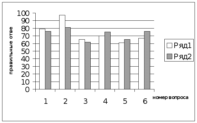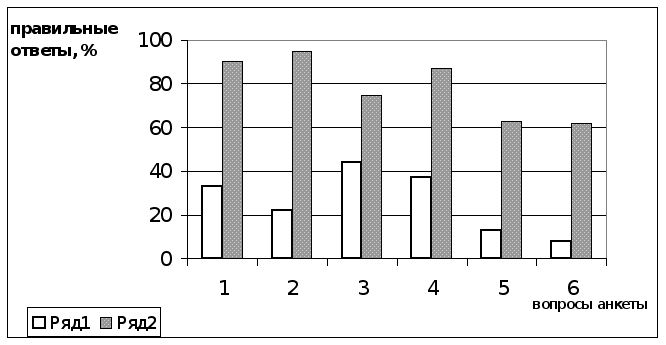 Диаграмма 1. Правильные ответы учащихся на вопросы анкеты 2 до посещения ими спецкурса и после него.