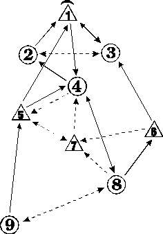 В первом варианте участник пишет справа с кем из группы он хотел совместно работать, слева - с кем не хотел. Вариант 2 - то же в совместном отдыхе. В обоих вариантах это надо делать в порядке убывания. Вы можете изменять и дополнять социометрический тест другими вопросами в зависимости от ваших начальных знаний о социуме. Например, “С кем бы вы пошли в разведку?” Обработав социометрический тест, вы можете составить социограмму, которая выглядит следующим образом: