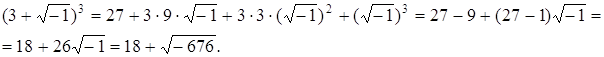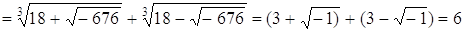Аналогично, Как видим, “странные” корни успешно сокращаются. То есть мы решили обычное уравнение и нашли корень – обычное действительное (и даже натуральное) число. Но для этого в промежуточных выкладках нам пришлось оперировать “необычными“ числами. И самое главное – никаким другим способом, за исключением разве что угадывания, это решение получить не удается! Теперь у нас есть три пути: - безоговорочно следовать установленным запретам и отказаться от новых приобретений, т.е. считать, что никакого метода решения неприводимого случая кубического уравнения у нас нет; - “спрятать голову в песок”, т.е. каждый раз,