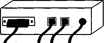 Мал.5.1. Задня панель зовнішнього модему Необхідно відзначити, що в деяких комп'ютерів присутній тільки один Сом-порт. У більшому ступені дане твердження відноситься до комп'ютерів Brand Name і до продукції великих російських збирачів. Як правило, у таких випадках єдиний 9-штирьковий порт не зайнятий ніяким пристроєм, тому вам буде потрібно кабель для підключення до 9-штирьковому, а не 25-штирьковому порту. Миша в таких комп'ютерах підключається до рознімання PS/2. Після підключення до телефонної мережі задня стінка вашого модему буде виглядати приблизно так, як показано на мал. 5.1. Внутрішній модемПідключення внутрішнього модему не складніше, хоча займає ледве більше часу. Перед підключенням визначите, яке переривання встановлене на платі модему (тільки для модемів, що підтримують ручне конфигурування). Для цього треба подивитися на чи перемички джамперы на платі модему і співвіднести їхнє положення з описаним у керівництві. Переставляючи вручну перемички (джамперы), можна виставити необхідне переривання. Часто такі перестановки потрібні при конфлікті переривань, але, за винятком рідких випадків, вони не вимагаються. У більшості модемів, за замовчуванням виставлене IRQ 3.