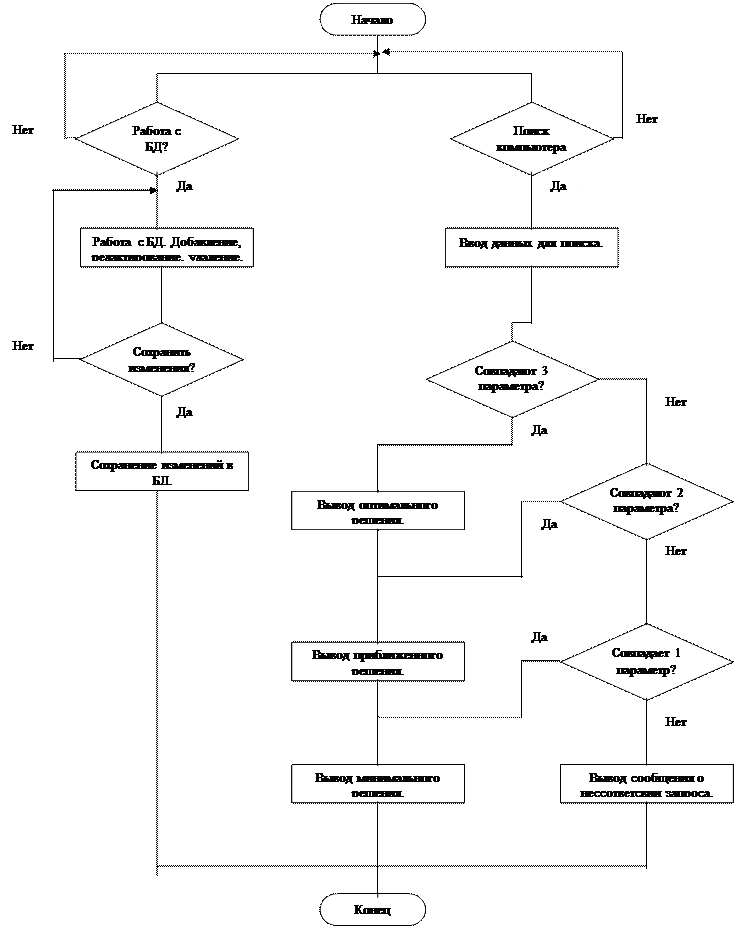 ОглавлениеВведение.. 3 1. Определение объекта имитации.. 4 2. Описание имитационной модели поиска оптимального товара персонального компьютера (ноутбука) на рынке.. 4 3. Алгоритм программы... 7 4. Описание работы программы... 8 Заключение.. 10 литература.. 11 Введение В курсовой работе на конкретных примерах выделяются и рассматриваются основные элементы и подсистемы, типовая структура и функции системы. Формулируются общая задача синтеза модели и задача моделирования основных элементов и подсистем. Предлагается методика построения наилучшего варианта реализации и моделирования системы. Для формализации объекта проектирования используются методы теории графов, позволяющих наглядно представить процесс моделирования и обработки информации. Методика выбора наилучшего варианта построения модели с использованием имитационного моделирования приведена на практическом примере. Модель оптимального выбора персонального компьютера с учетом требований покупателя и имеющихся в продаже, выбрана в качестве темы курсовой работы не случайно, т.к. компьютер все прочнее входит в нашу жизнь. Без персонального компьютера не возможно представить офис любой организации, а также в связи с высоким ростом популярности всемирной сети Internet компьютер все прочнее занимает место у нас дома. Этапы моделирования 1. Определение объекта имитации, установление границ и ограничений моделирования, выбор показателей для сравнения эффективности системы; 2. Составление и описание логической схемы модели; 3. Преобразование формального описания объекта в описание модели; 1. Определение объекта имитацииОбъектом имитации в моей курсовой работе является персональный компьютер (ноутбук), а точнее приобретение персонального компьютера (ноутбука) покупателем. Границами изучения функционирования объекта имитации были выбраны: 1. Выбор модели персонального компьютера, в программе представлены персональные компьютеры (ноутбуки) на основе процессора фирмы Intel, в частности будем разбирать персональные компьютеры (ноутбуки) – модели на основе процессора i486, iPentium, iPentium 2, iCeleron, iPentium III и iPentium 4. 2. Ценовой критерий компьютера, цены разделены на 6 групп – до 15 тысяч рублей, от 15 001 до 25 000, от 25 001 до 40 000, от 40 001 до 55 000, от 55 001 до 70 000, и свыше 70 001 тысяч рублей. 3. Дата выпуска компьютера, так же разделена на 6 групп – 2002г., 2001г. , 2000г., 1999г., 1998г., 1997г. и старше; Это три основных параметра при покупке компьютера (ноутбука) и выделены в моей модели как основные и предположительно равноправные. Предполагается, что существует база данных (БД) по компьютерам, имеющиеся в продаже, и данные о продавце (в моей программе – телефон продавца). Анализируя запросы покупателя и имеющиеся данные об компьютерах, программа должна выдать наиболее приближенный к запросу вариант. 2. Описание имитационной модели поиска оптимального товара персонального компьютера (ноутбука) на рынкеВ первую очередь необходимо определить цель моделирования и цель самой модели. В данном случае целью моделирования является поиск оптимального компьютера на рынке, целью модели – осуществление/неосуществление продажи компьютера. В моей модели есть два основных элемента – покупатель, стратегией которого является удовлетворение запроса (покупка компьютера), и продавец, стратегией которого является удовлетворение спроса (прод