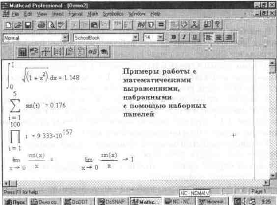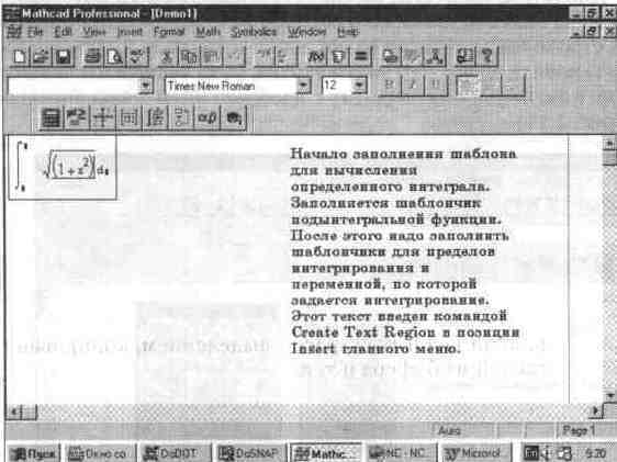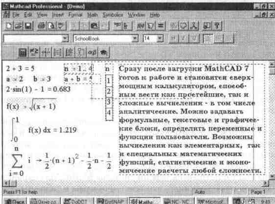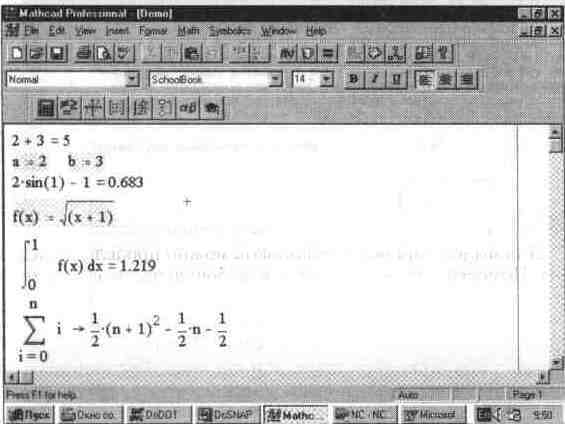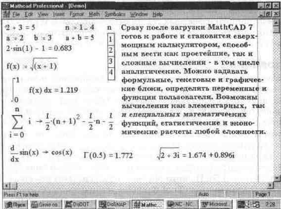 Рис. 1. 5 Экран системы MathCAD с загруженным документом