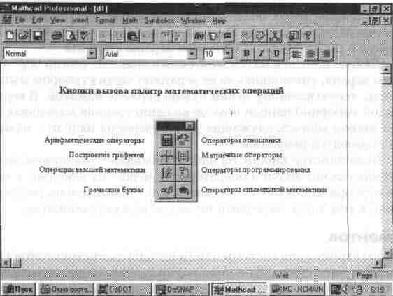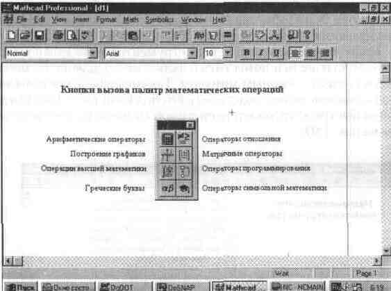 Рис. 1. 8 Панели математических символов и операторов системы MathCAD 7. 0 PRO