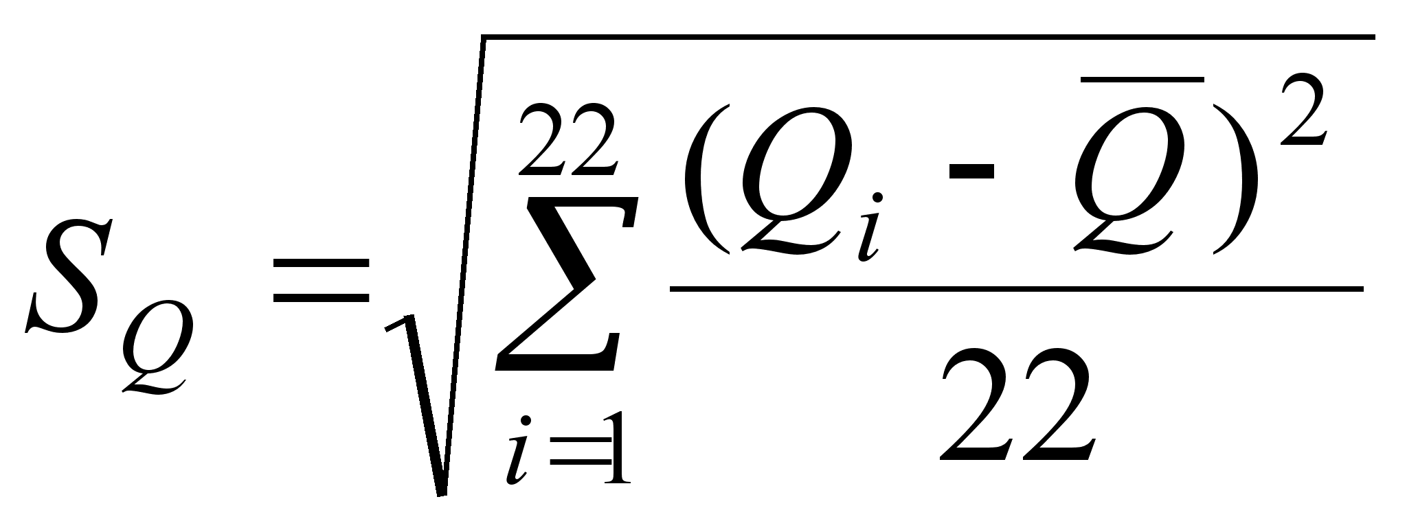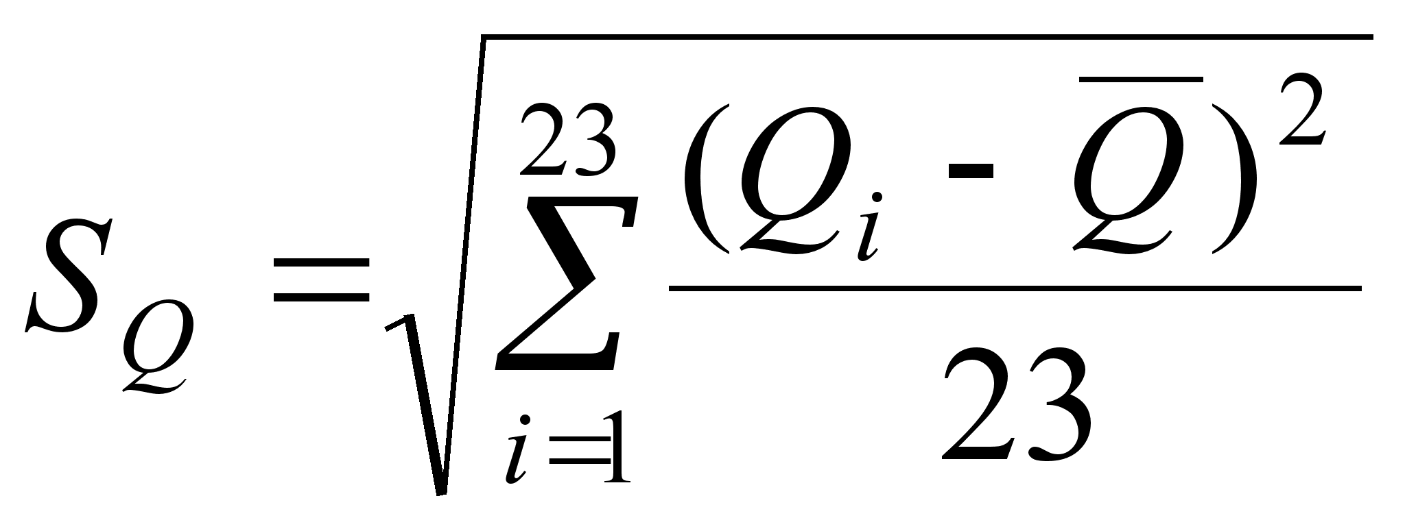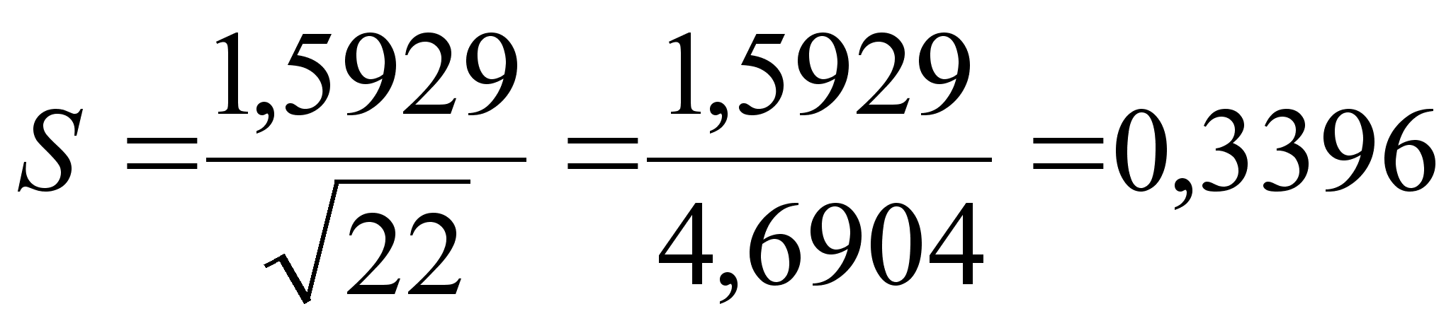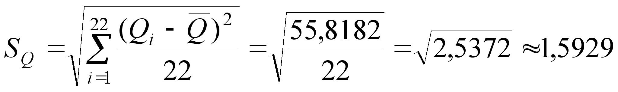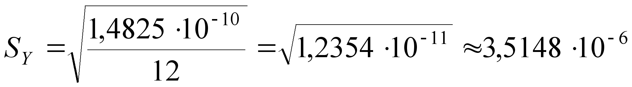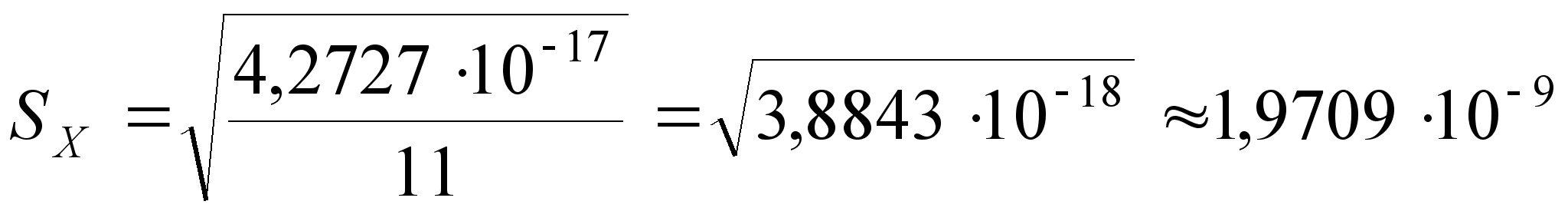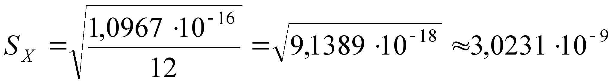 4. Определяем стандартное отклонение среднего арифметического. Так как закон распределения вероятности результата измерений признан нормальным, то стандартное отклонение определяем как: