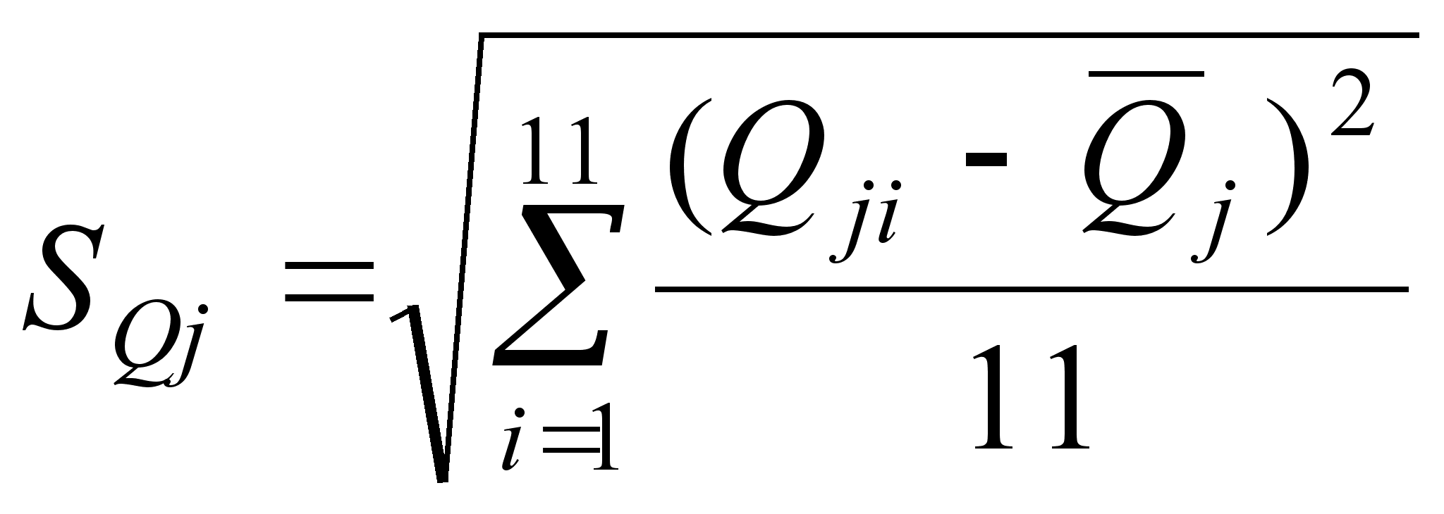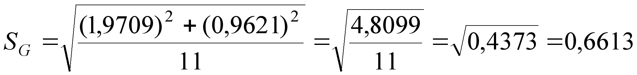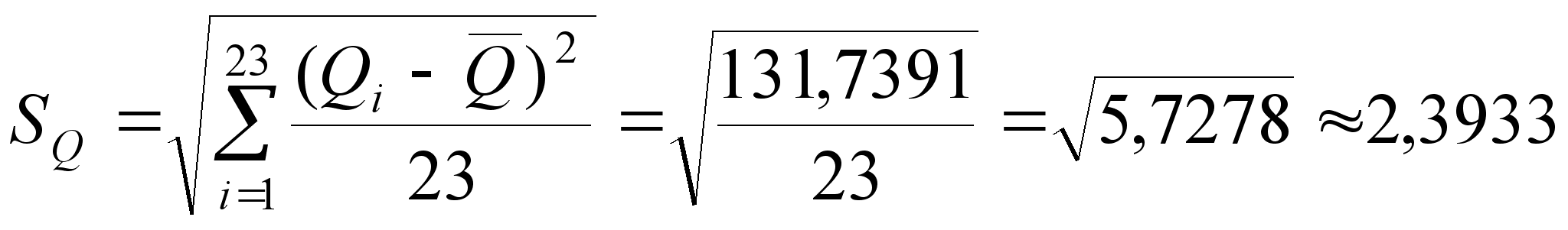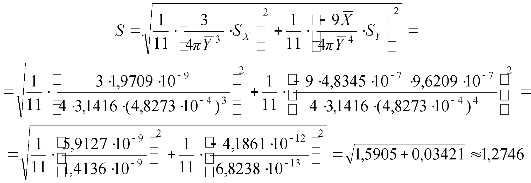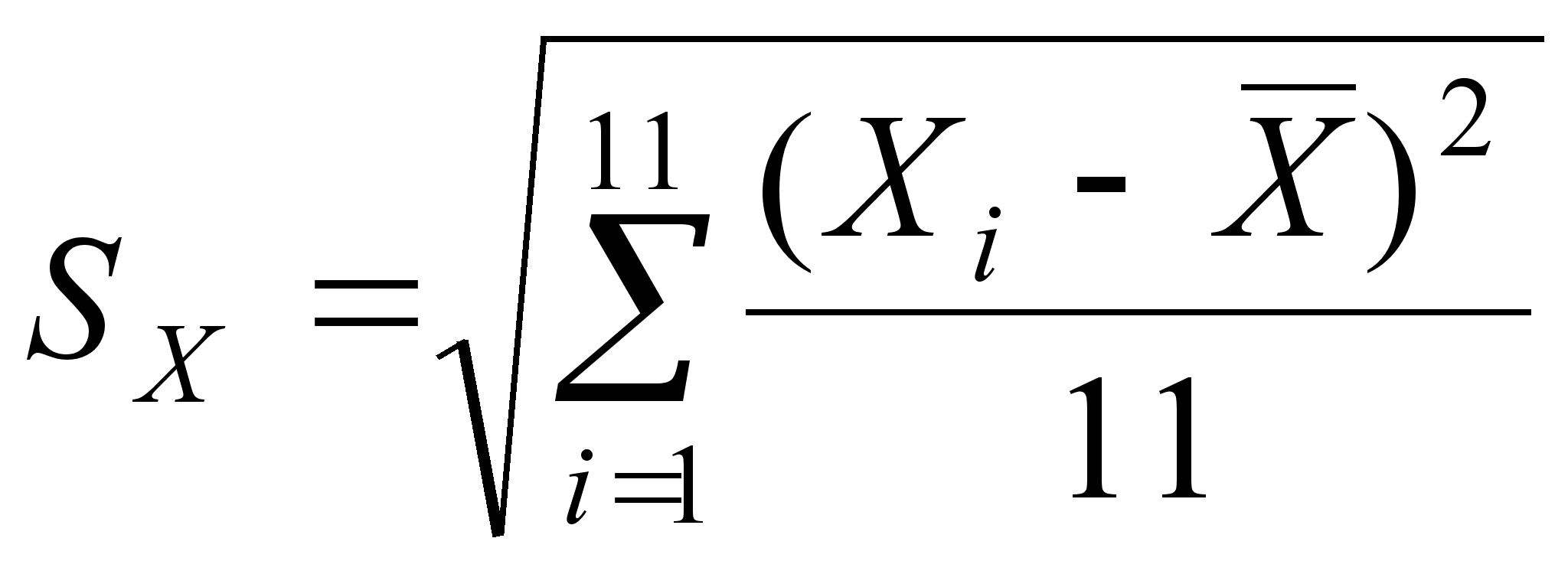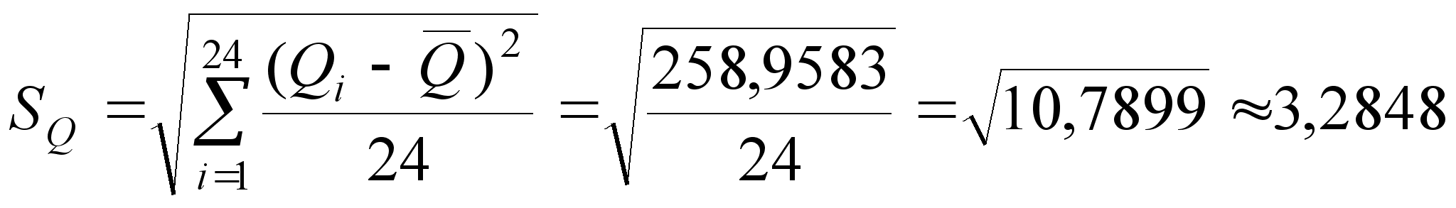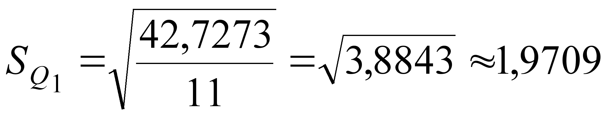 4. Определяем стандартное отклонение среднего арифметического. Так как закон распределения вероятности результата измерений признан нормальным, то стандартное отклонение определяем как: