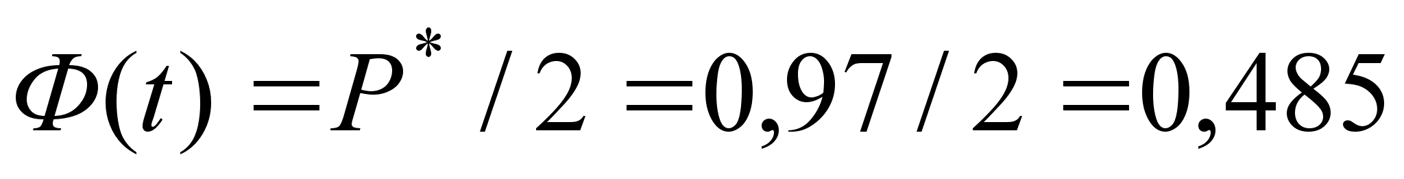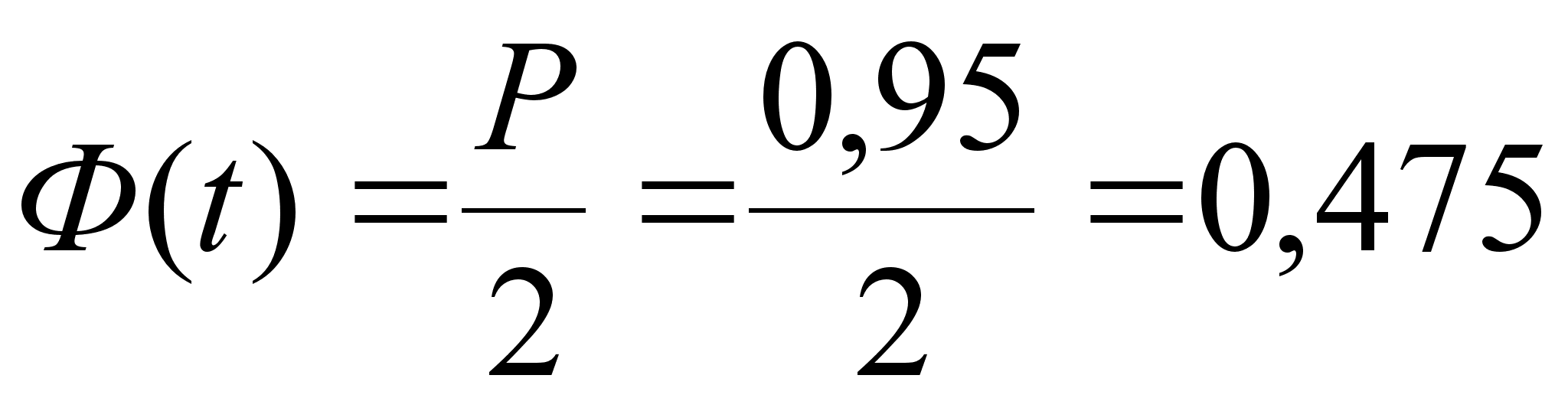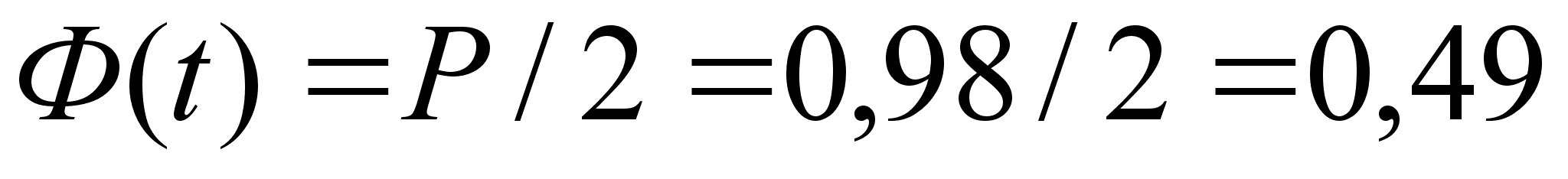 – задавшись доверительной вероятностью P = 0,95, определяем из таблицы интегральной функции нормированного нормального распределения Ф(t) значение t.