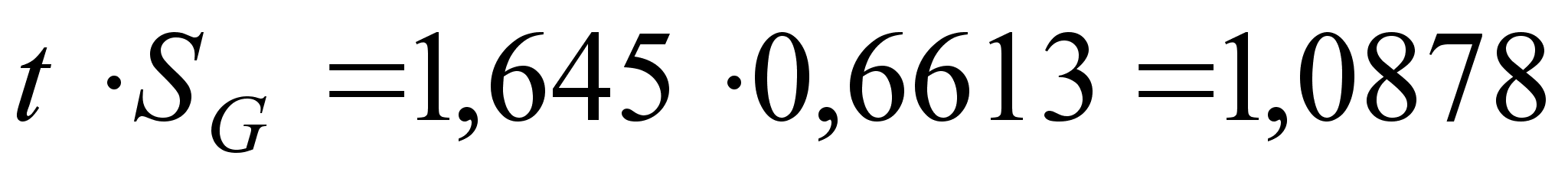 – задавшись доверительной вероятностью P = 0,95, определяем по таблице t = 1,96. Определяем доверительный интервал.
