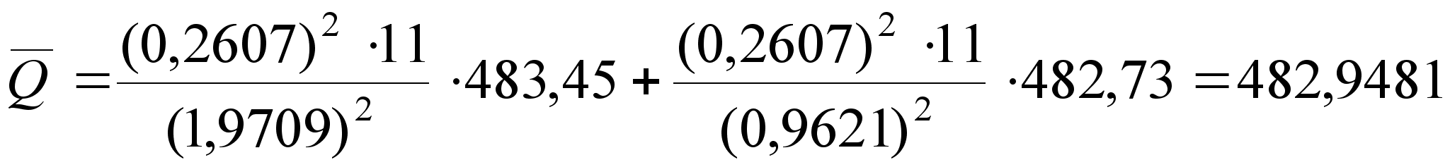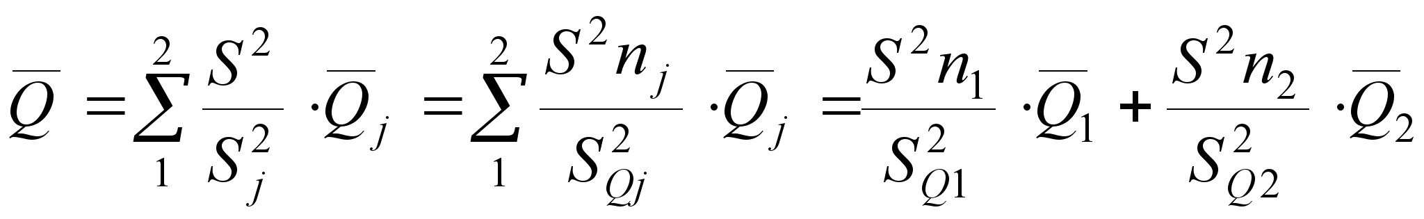 Из таблицы находим значение аргумента интегральной функции распределения Фишера Ψ0; Ψ0=1,96 при P=0,95. Сравниваем Ψ и Ψ0: Ψ > Ψ0, следовательно, серии с доверительной вероятностью P = 0,95 считаем рассеянными. 4. Обрабатываем совместно результаты измерения обеих серий с учетом весовых коэффициентов: