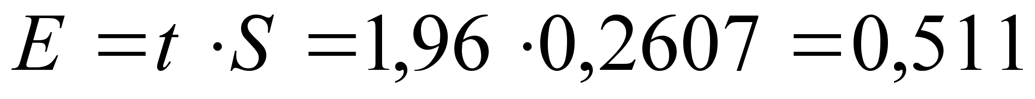 при Ф(t) = 0,485 t = 2,17; Рассчитываем E: