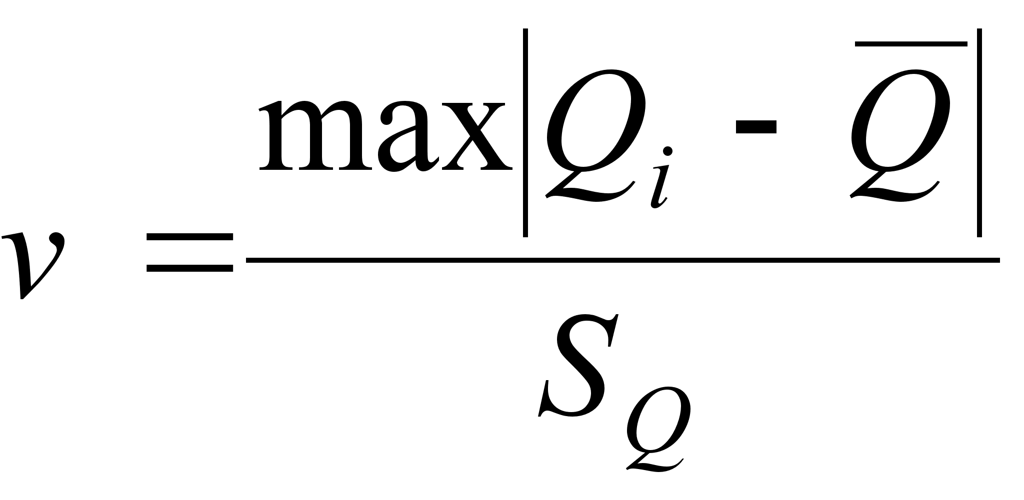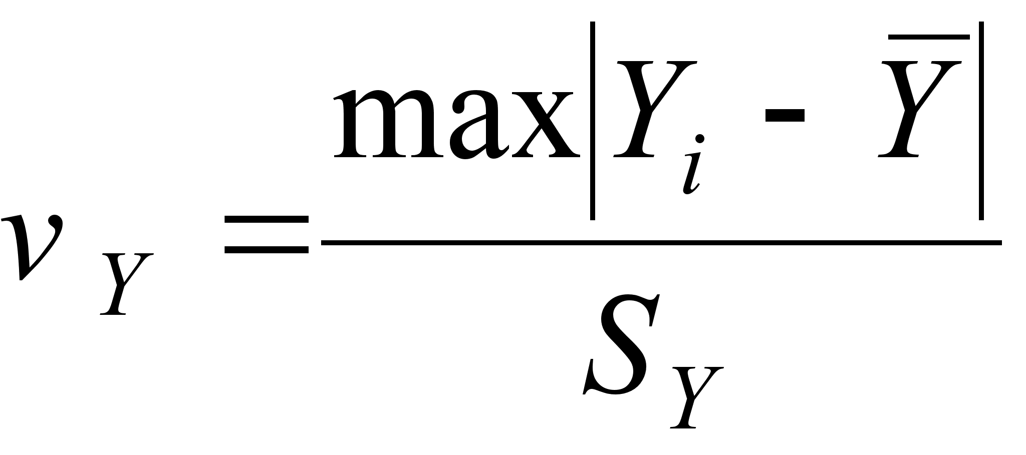 2. Необходимо обнаружить и исключить ошибки. Для этого: – вычисляем наибольшее по абсолютному значению нормированное отклонение