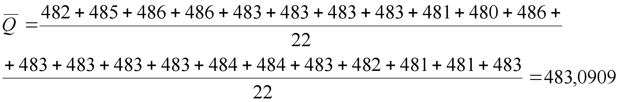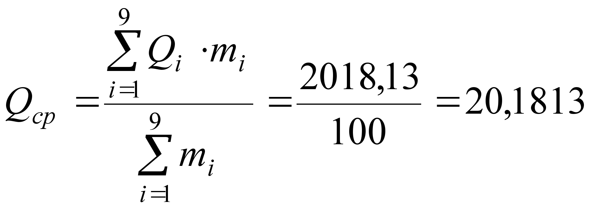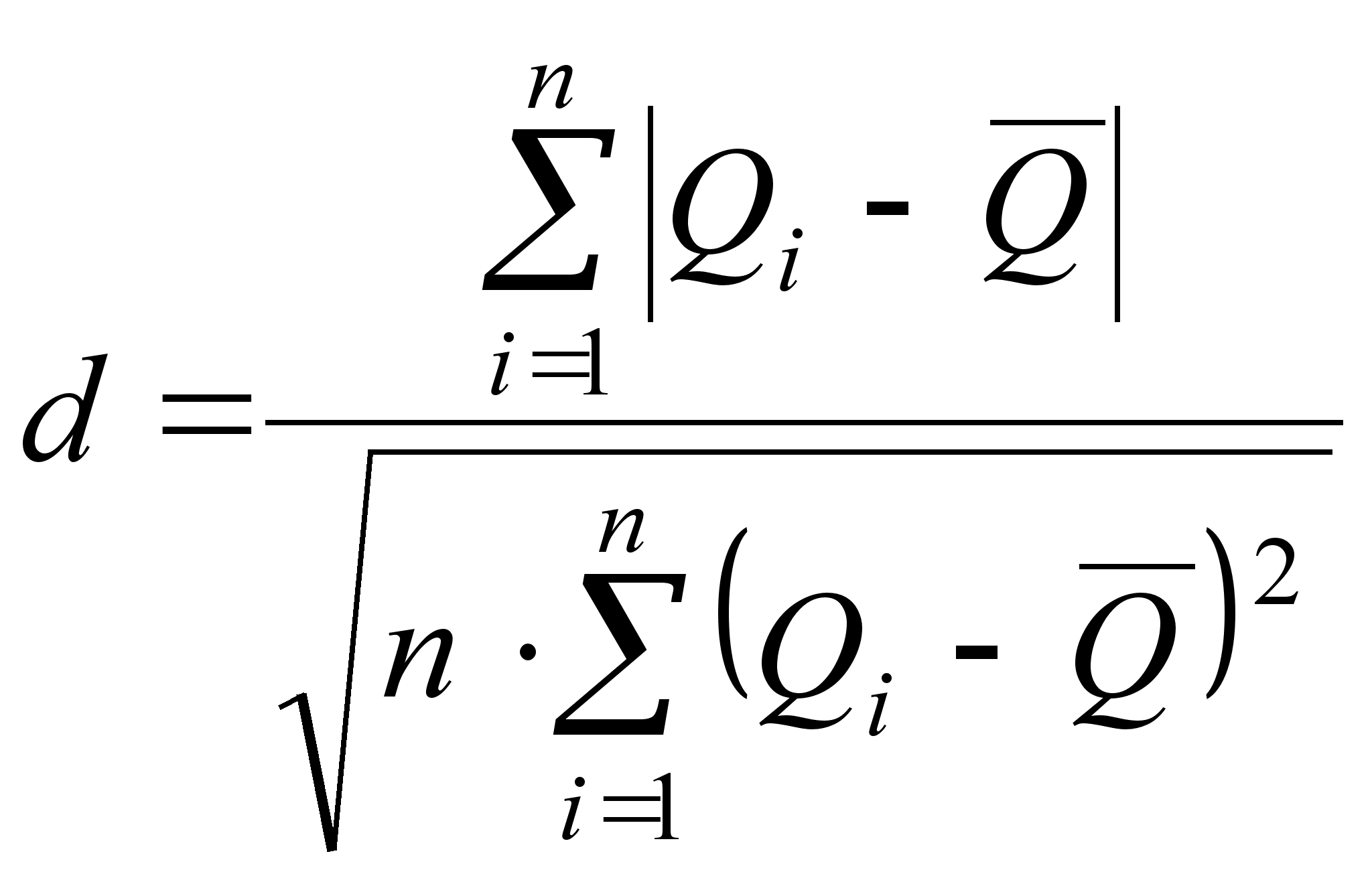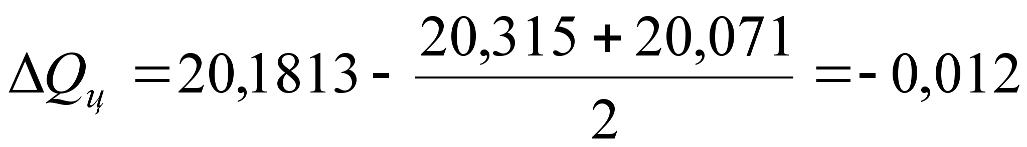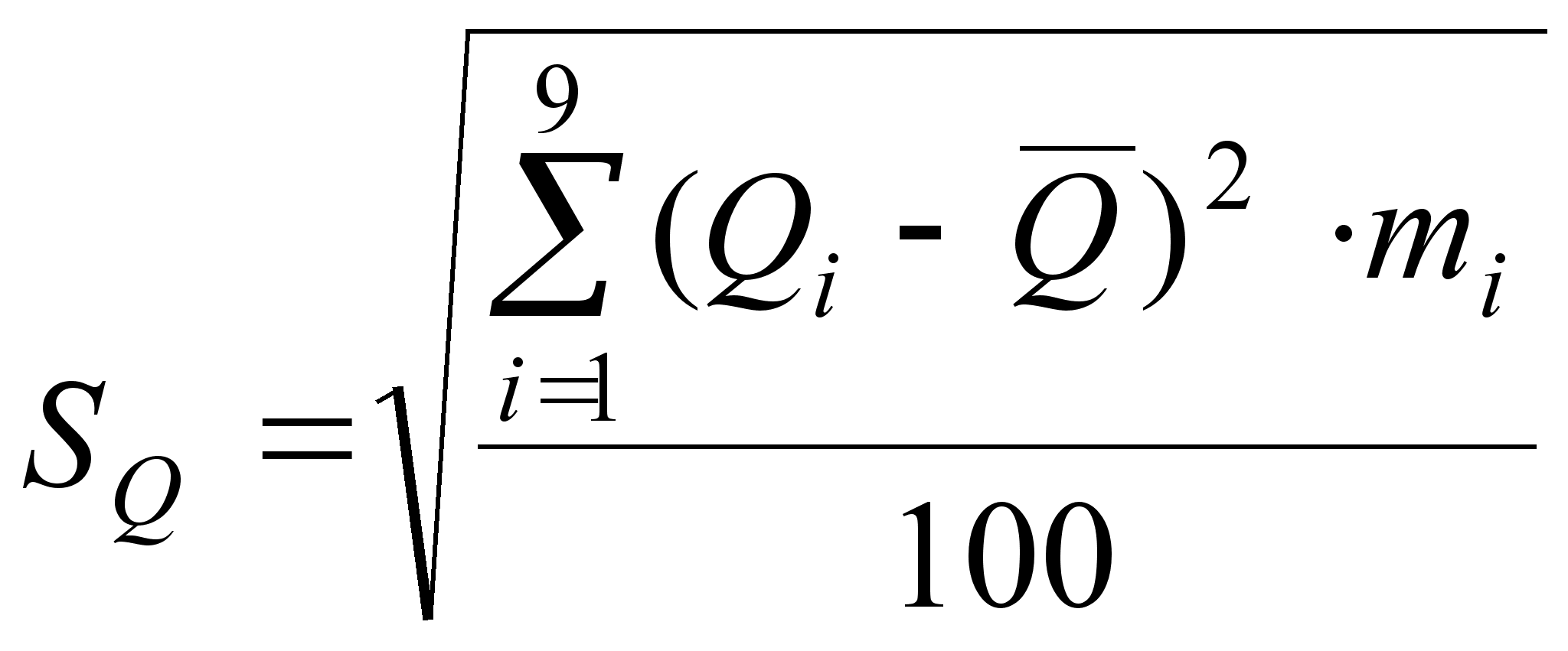 Расчет. Случайные погрешности, имеющие место при измерении, подчиняются закону нормального распределения, который графически изображается кривой Гаусса, имеющей симметричную форму с округленной вершиной и с каждой стороны по одной точке перегиба на некотором расстоянии от вершины. При проведении исследования, чтобы составить графики и определить, на сколько полученная кривая рассеяния фактических результатов измерения приближается к теоретической кривой нормального распределения, обе кривые надо начертить совмещёнными в одинаковом масштабе. С этой целью рассчитаем данные, необходимые для построения кривой нормального распределения. Для сокращения расчетов и упрощения примерного построения кривой нормального распределения можно ограничиться определением только трех параметров: максимальной ординаты Ymax (при X = 0), ординаты для точек перегиба Yσ (при X = ±SQ) и величины поля рассеяния. Результаты измерения Qi разбиваем на 9 групп через установленные интервалы с указанием абсолютной частоты (mi) появления результата измерения внутри каждого интервала. Данные располагаем для удобства расчетов в форме таблицы (таблица 12), заполняемой по мере проведения расчетов. Величина интервала определяется по формуле: