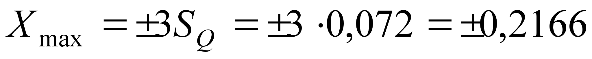 По этим данным строится кривая нормального распределения непосредственно на графике рассеяния фактических значений. Величина смещения центра поля рассеяния от середины области допустимых значений по абсциссе равна:
