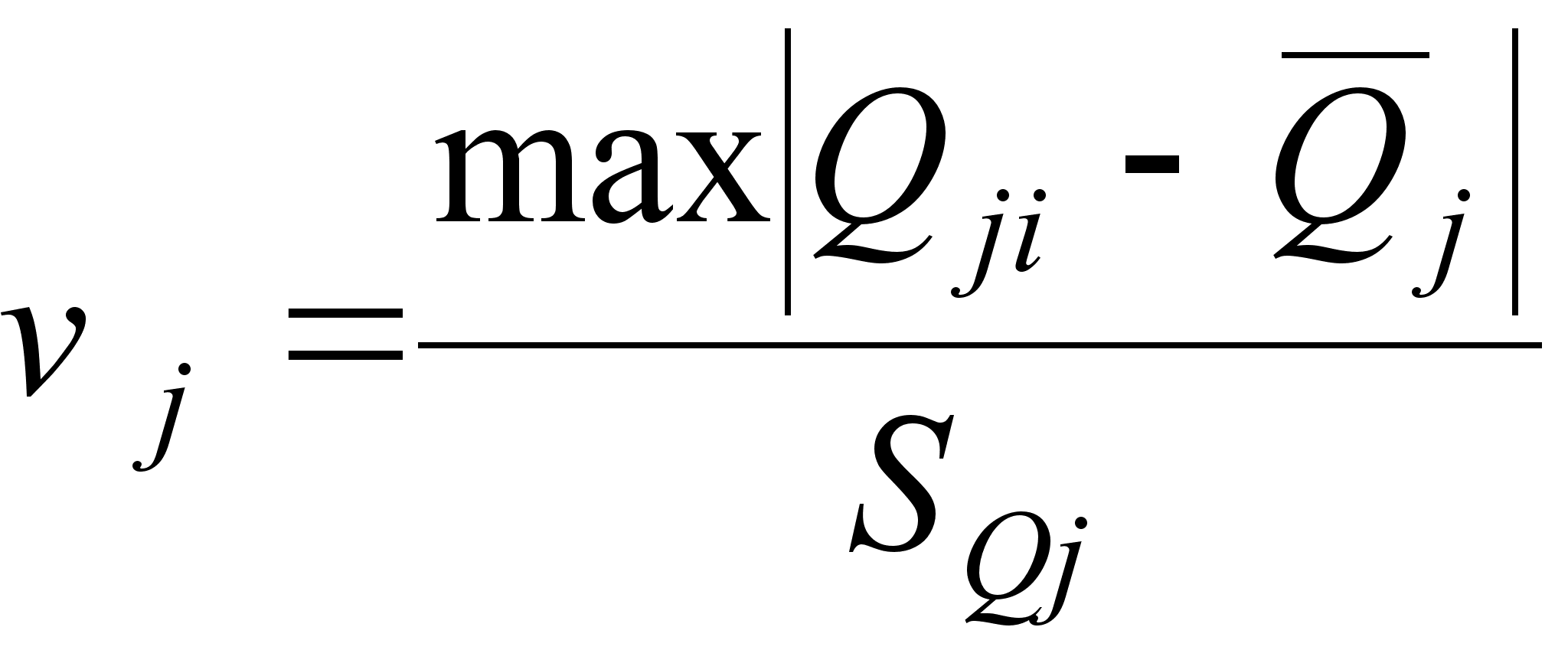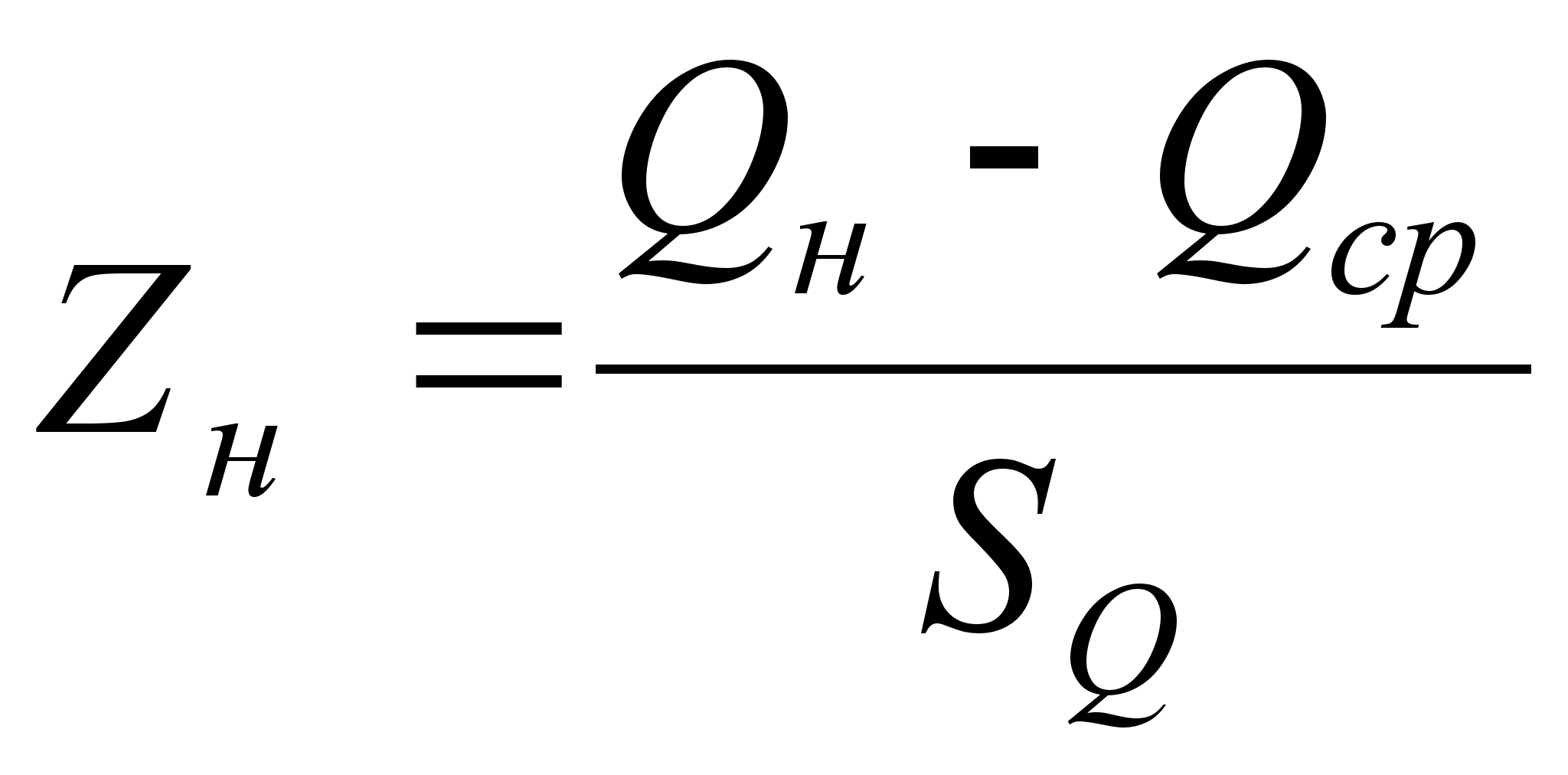 где: Qср – абсцисса центра поля рассеяния; Qв – верхнее предельное значение области допустимых значений; Qн – нижнее предельное значение области допустимых значений.