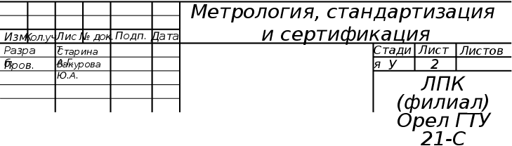 Курсовая работа3030МИНИСТЕРСТВО ОБРАЗОВАНИЯ РФ ОРЛОВСКИЙ ГОСУДАРСТВЕННЫЙ ТЕХНИЧЕСКИЙ УНИВЕРСИТЕТ Ливенский политехнический колледж (филиал) Орел ГТУ кафедра ПМиС КУРСОВАЯ РАБОТА по дисциплине: «Метрология, стандартизация и сертификация» по теме: «Статистическая обработка экспериментальных данных» Выполнил: студент гр. 21 – с направление 550100 курс 2 шифр 994145 ____________________Старина А.Г. Работу проверил ____________________Бакурова Ю.А. Оценка ___________________ Дата защиты ______________ ЛИВНЫ 2002 |