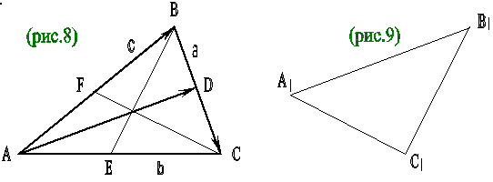 Решение. Обозначим медианы треугольника АВС через ВЕ, СF и обозначим векторы, идущие вдоль сторон треугольника АВС, через а, в, с: