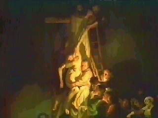 зняли вночі тіло Христа, загорнули його в багату плащаницю і поховали. Легенда розказана Рембрандтом із приголомшливою життєвою правдою. Трагічна смерть вчителя і сина принесла учасникам події глибоке горе. Художник вдивляється в обличчя, намагаючись проникнути в душі людей, прочитати реакцію кожного на те, що відбувається. Схвильовано передає він непритомність Марії, матері Христа, плач і стогони жінок, страждання і скорботу чоловіків, переляк і цікавість підлітків. У цьому творі Рембрандт відштовхувався від відомої картини Рубенса тієї ж назви, використовуючи окремі композиційні мотиви великого фламандця і прагнучи перевершити його у вираженні щиросердечних рухів героїв. Іншим важливим досягненням цієї картини, поряд з індивідуалізацією почуттів діючих осіб, з'явилося використання світла для досягнення цілісності багатофігурної композиції. Три головних моменти легенди – зняття з хреста, непритомність Марії і розстеляння плащаниці – освітлені трьома різними джерелами світла, інтенсивність яких убуває згідно зі зменшенням значення сцени.
