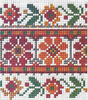 Виды орнаментов Создавая орнаменты для вышивки, художники во все времена обращались к природе, но не просто копировали её, а перерабатывали, стилизуя упрощали, сохраняя самое характерное. В украинской народной вышивке встречаются растительные, геометрические, растительно-геометризованные орнаменты, орнаменты с изображениями животных, орнаменты с эмблемами. В вышивке рушников, панно, посвящённых знаменательным датам, употребляются эмблемы государства. Растительные орнаменты состоят из стилизованных (упрощённых) цветов, листьев, бутонов, стебельков. Геометрические орнаменты состоят из разнообразных геометрических фигур: треугольников, ромбов, квадратов, звёзд и др. В вышивке рушников, салфеток, скатертей, панно в орнаментах встречаются стилизованные животные, птицы, насекомые. Растительно-геометризованные орнаменты состоят из геометризованных, упрощённых цветков, листьев, бутонов, стебельков. Виды швов украинских народных вышивокШвы украинских вышивок делятся на основные и дополнительные. Основные швы в свою очередь делятся на счётные и декоративные. Счётными называются такие швы, для выполнения каждого стежка которых необходимо считать нити тканей. Счётными швами выполняют геометрические или растительно-геометризованные орнаменты. К счётным швам относятся: прямая гладь, косая гладь, занизывание, набор, низь, крестик, зерновой вывод, выкалывание, вырезывание, верхошов, различные виды мережек. Разнообразие орнаментов достигается сочетанием нескольких видов швов в одном узоре. Так, узор может быть выполнен: прямой гладью, вырезыванием, выколками, зерновым выводом, ретязем, двусторонней штаповкой. В декоративных швах (их ещё называют свободными) стежки вышивки выполняют по рисованному контуру орнамента. Следовательно, к декоративным относятся швы, которыми вышивают растительные орнаменты. Это – двусторонняя гладь, полтавская гладь, художественная гладь, рушниковые швы. Простые декоративные швы: строчка, стебельчатый шов, цепочка или тамбурный шов, а также гладьевой шов качалочки, которыми выполняют геометрические и растительно-геометризованные орнаменты. К дополнительным швам относятся: краевые швы, которыми оформляют края салфеток, рушников; соединительные швы (смереживание ), которыми можно соединять отдельные детали таких изделий, как блузы, платья, юбки и др.; зубцевание – швы, которыми оформляют края манжет, рукавов, воротников в изделиях, а также сборка на нитку – пухлики. Чтобы работа над вышивкой образцов украинских народных швов приносила творческое удовлетворение, надо с самого начала стараться выполнять всё чётко и аккуратно. Красота украинских народных счётных швов зависит от точности счёта нитей ткани. Растительные орнаменты надо вышивать точно по контуру рисунка.