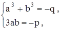 Итак, мы показали, что в кубическом уравнении (11) с помощью подходящей подстановки можно избавиться от члена, содержащего квадрат неизвестного. Поэтому теперь будем решать уравнение вида Формула Кардано Давайте еще раз обратимся к формуле куба суммы, но запишем ее иначе: