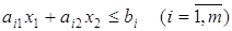 при ограничениях (*) причем все Замечание. Неравенства могут быть и противоположного смысла. Умножением соответствующих неравенств на (-1) можно всегда получить систему вида (*). Если число переменных системы ограничений и целевой функции в математической модели задачи равно 2, то её можно решить графически. Итак, надо