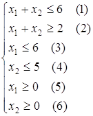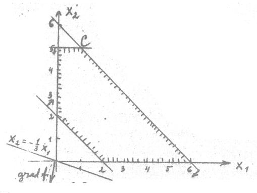 Последняя вершина многоугольника решений есть точка С, получаемая пересечением прямых (1) и (4). Решая, получим С (1;5). Итак, оптимальные