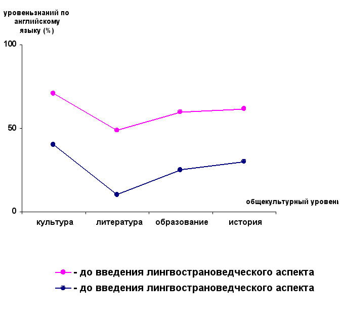 "Парад звезд" западного мира несомненно свидетельствует о разной направленности представлений и интересов школьников, а так же о несформированности мировоззрения в данной возрастной группе и о поиске образцов для подражания. В вышесказанном были представлены результаты изучения одного из компонентов перцептивной готовности учащихся к чтению материала лингвострановедческого содержания: уровень развития личности. На основе этого нас привело к выводу о необходимости целенаправленного формирования общественно ценных интересов, мотивов, идеалов, приобщение их к общечеловеческим культурным ценностям. Это анкетирование проводилось дважды до введения ЛС-го компонента и после (см. график 1). Как показывает график, уровень развития повысился на несколько процентов, так как уроки и внеурочные мероприятия были насыщены лингвострановедческой информацией. Повысились знания по литературе. После проведения ряда дополнительных занятий учащиеся заинтересовались не только произведениями М. Твена, Ж. Верна, но и такими произведениями выдающихся писателей как Р. Бернса, Ч. Диккенса, В. Шекспира, Р.Киплинга. Так же учащиеся углубились в культуру изучаемой страны. В связи с этим школьники повысили не только общий уровень развития, но и знания языкового материала. Это видно из диаграммы (Приложение 7). Чтобы повысить и уровень знания языка, и общекультурный уровень, эффективно использовать познавательно-страноведческий подход к обучению чтения. При чтении текстов рекомендую использовать комментарии. Перед текстом я прибегала к опережающему комментарию. Это помогало учащимся глубже проникнуть в содержание читаемого, обогатить их сведениями страноведческого и лингвострановедческого характера и, естественно, снять трудности. Но прежде чем перейти к чтению текстов, я интенсивно проводила работу над лексикой, в том числе над устойчивыми выражениями и речевыми формулами. Речь идет об облегчение процессов запоминания и о создании необходимой прочной иноязычной информационной базы. Большой интерес вызывает в этом плане широкое использование опорных схем. Лексико-семантические схемы позволяют кодировать предметно-содержательный план высказывания, помогая даже самому слабому ученику лучше подготовиться к беседе или построить свое логическое высказывание на репродуктивном уровне. При проведении уроков большую роль играют разнообразные средства обучения: раздаточный материал, слайды, пособия грамматического инструментария, таблицы, схемы. Целесообразно предлагать ученикам опросники, кроссворды, тесты. Интерес вызывает работа с пословицами и поговорками. Ведь они являются выразителями народной мудрости и накапливают в своем содержании опыт народа и особенности его национальной культуры. Так же мной на практике был использован метод «Трамплин», направленный на формирование страноведческой компетенции. К сожалению, окончательные результаты эффективности этого метода трудно предоставить, так как он требует более длительного процесса изучения. Суть метода. Учитывая возраст учащихся, в этом методе широко представлены песни, стихи, считалки. На основе этих рифмовок учащиеся знакомятся с обычаями, культурой, историей. Так при прохождении темы «Знакомство», мы разучивали такие стихи, песни, из которых дети узнают как надо предст