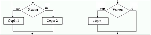 початок (або кінець) алгоритму блок введення та виведення - командний блок блок умовного переходу (розгалуження) Рис.1. Блоки алгоритмів