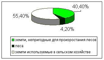 Источник: Энциклопедия Кыргызской Республики. Б.-2001г Распределение водных ресурсов на территории республики крайне неравномерно, что существенно влияет на размещение отраслей народного хозяйства. Так, в Чуйской долине с ее благоприятными климатическими условиями, где проживает свыше 31,5 % населения, сосредоточено всего 7,7 % речных вод. А в Нарынской зоне, где суровые климатические условия и проживает всего около 6 % населения республики имеется почти 41 % водных ресурсов Кыргызстана. Земельные ресурсы. Развитие и размещение реального сектора производительных сил страны, особенно сельскохозяйственного производства, во многом определяется наличием и освоенностью земельных ресурсов. По данным Нацстаткома Кыргызской Республики, на 1.01.2001г. в стране используются 19994,9тыс.га земель, из которых 10798,1тыс.га или 54,1% приходится на сельскохозяйственные угодья. В товарном секторе: - пашня 1261,1 (6,3 %), - многолетние плодовые насаждения 40,1 (0,2 %), - залежи 20,9 (0,1 %), - сенокосы 169,1 (0,8 %), - пастбища 9115,1 (45,8 %); В индивидуальном секторе: - приусадебные земли – 157,1 (0,8 %), - коллективные сады 4,4 (0,002 %), - огороды 0,65 (0,03 %). Общая площадь орошаемых земель в пользовании составила 1058,9 тыс. га. Земли в пользовании сельскохозяйственных товаропроизводителей составили 6191,8 тыс. га. (в том числе орошаемых 992,6 тыс. га.), запаса 10324,3 (24,9) тыс. га., лесного фонда 2617,4 (13,0) тыс. га., населенных пунктов 200,6 (115,9) тыс. га., промышленности, транспорта, связи, обороны 234,7 (3,4) тыс. га., особо охраняемые 350,0 (1,3) тыс. га., водного фонда 93,4 (0,5) тыс. га. Таблица 2 - Земельные ресурсы в пользовании (ведении) Кыргызской Республики (тыс. га)