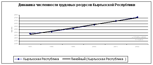 Олово и вольфрам. В результате проведения геологоразведочных работ в Сары-Джазском районе Иссык-Кульской области выявлены две группы оловорудных месторождений: Акшийракское, Эныльчекское. Каждое из них включает в себя ряд месторождений и рудопроявлений. В рассматриваемом регионе выявлено чисто вольфрамовое месторождение «Кен-Суу». Здесь размещены и наиболее перспективные месторождения «Трудовое», «Учкошон», «Сары-Булак», «Темир-Таш». Подготовленные запасы, а также прогнозные возможности обнаружения новых оловорудных месторождений в республике выдвигают ее число перспективных оловоносных районов в СНГ. Ввод в эксплуатацию оловорудных месторождений в Иссык-Кульской области в перспективе не только даст народному хозяйству необходимую продукцию, но и послужит базой для комплексного развития высокогорного района. Строительство предприятия на основе оловорудного месторождения в области положит начало формированию Сары-Джазского горнопромышленного узла, так как здесь будут подготовлены общие инженерные коммуникации, энергетическая база, транспортные артерии. 2.2 Численность населения и трудовые ресурсы Кыргызской Республики Во всех исследованиях всегда давало себя знать то положение, что одна из ключевых проблем развития и размещения производства – проблема человека, размещения населения, обеспечения трудовыми ресурсами всех районов страны, в том числе и вновь развивающихся. Социально-экономическая и социально-политическая актуальность проблемы размещения населения особенно возросла в настоящее время. Проблема размещения населения непосредственно связана с судьбами миллионов людей, от правильности её решения зависят условия жизни и труда народных масс, она затрагивает жизненные интересы основной производительной силы – человека. Когда мы говорим о развитии производства в широком смысле слова, то, как правило, имеем в виду развитие производительных сил и производственных отношений. Решая проблемы развития производства, мы тоже соприкасаемся с размещением производительных сил и производственных отношений. Но обычно, когда говорят о размещении, имеем в виду, прежде всего размещение производительных сил. Да и на практике размещают в основном производительные силы, включающие в себя орудия и средства производства и главную производительную силу население, людей, без которых вообще немыслим никакой процесс производства, так как именно они приводят в движение эти орудия и средства. Между тем рационально разместить производительные силы и производство в целом невозможно без учета производственных отношений и их воздействия на размещение. Население, рабочая сила является на ряду со средствами производства, средствами труда, предметами труда производительной силой. Но роль этих двух составляющих производительных сил в процессе производства неодинакова. Средство (или орудие) труда человек помещает между собой и предметом труда для того, чтобы, оказывая воздействие на него, получать необходимый продукт. Человек активно заставляет действовать средствами труда и как орудие своего воздействия на природу. Именно человек помещает средства труда между собой и предметом труда, именно человек заставляет действовать средства труда. Без прикосновения человека все средства труда не могут функционировать,