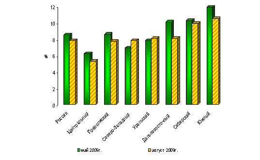 Рис. 2.3 Уровень безработицы, по методологии МОТ, по федеральным округам РФ (в % от численности экономически активного населения) [1] Экономическая теория: Элементарный курс / Под ред. С.С. Носова.-М.: Дашков и К, 2004 [2] Русакова И.Г. Рынок труда и проблемы трудоустройства// Высшее образование в России – 2007- №4- С. 10-14. [3] Булатова А.И. Регулирование с точки зрения теории// Человек и труд. – 2009.- №5.- С. 45-48 4 Гимпельсон В. Дефицит квалификации и навыков на рынке труда: Недостаток предложения, ограничения спроса или ложные сигналы работодателей? / Вопросы экономики. – 2004. - № 3. – С. 95-104. [5] Четвернина Т.К. Положение безработных и государственная политика на рынке труда // Вопросы экономики.- 2006.- №2.-С.35-40. [6] Жидкова Е.М. Ориентация на незанятость среди проблемных групп рынка труда / Социс: Социол. Исслед. – 2005. -№ 3. – С. 52-55. [7] Казаков А.А. Формирование рынка труда в современных условиях / Отечественный журнал социальной работы. -2003. -№ 3.- С. 19-23. [8] Брагин В., Осаковский В. Оценка естественного уровня безработицы в России в 1994-2003 гг.: эмпирический анализ / Вопросы экономики. – 2004. - №3. –С. 105-114. [9] www.gks.ru [10] Николаева И.П. «Экономика в вопросах и ответах: учебное пособие». – М.: ТК Велби, Изд-во Проспект, 2006. – 336с [11] Чепурин М.Н., Киселева Е.А. «Курс экономической теории: учебник». – 6-е исправленное, дополненное и переработанное издание – Киров: «АСА», 2008. – 89с [12] Белокрылова О.С. Экономика труда: Конспект лекций / О.С. Белокрылова, Е.В. Михалкина.- Ростов-на-Дону: Феникс, 2002.- 224 с. [13] Николаева И.П. «Экономика в вопросах и ответах: учебное пособие». – М.: ТК Велби, Изд-во Проспект, 2006. – 336с. [14] Закон РФ «О занятости населения в Российской Федерации» от 19.04.1991 N 1032-1(ред. от 27.12.2009) // Собрание законодательства РФ, N 17, 22.04.1996, ст. 5 [15] Соколовский П.М. Программы содействия занятости// Экономист – 2005- №5- С.72-75. [16] Камаева М. Развитие рыка труда – неотъемлемый элемент государственной политики. // Человек и труд – 2005- №5- С. 41-44 [17] Закон РФ «О занятости населения в Российской Федерации» от 19.04.1991 N 1032-1(ред. от 27.12.2009) // Собрание законодательства РФ, N 17, 22.04.1996, ст. 7 [18] Моляков Д.С. Государственная политика в области занятости// Человек и труд – 2006- №6- С.45 [19] Попов, А.Д. Вакансии как характеристика современного состояния российского рынка труда / А.Д. Попов //Вопросы статистики. – 2004. -№3. С.50-53. [20] Липсиц И.В. «Экономика: учебник для вузов». – М.: Омега-Л, 2006. – 656с. – (Высшее экономическое образование) [21] http://www.ancor.ru/ - Бендина Н. «Российский рынок труда готовится к шторму», RBC, 04.05.2008г. [22] Браччи Дж. Новые формы занятости, информационные технологии.// Вопросы экономики. – 2005. -№2. – С.35-40. [23] http://www.severinform.ru/ - Информационное агентство "СеверИнформ"// Статьи// «Российский рынок труда: проблемы безработицы» от 16.09.2009г. [24] www.gks.ru [25] Демин А.В. Занятость в сельском хозяйстве: масштабы и динамика//Человек и труд- 2009- №3- С.37-43. [26] Сопунов Е.П. Работодатели и выпускники вузов на рынке труда: взаимные ожидания.//Социс – 2008.- №4.- С.37-46. |