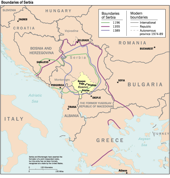 I Часть. История албано-сербского противостояния в Косово Истоки конфликта. В книге «Косово: международные аспекты кризиса» приводятся споры албанских и сербских историков о происхождении албанцев и их исконных землях на раннем этапе албанской истории. Директор Исторического института Сербской академии наук С. Терзич считает общепризнанным, что области Косово и Метохия никогда не находились в составе какого-либо албанского государства, а с XII в. входили в средневековое cербское государство "и с тех пор в европейской науке известны как исторические области Сербии", что в XIV в. "После завоеваний сербского царя Душана в Сербское царство вошла почти вся Албания (см. приложения). Однако из этого исторического факта сербы не делают вывод об особых правах на земли, которые составляют нынешнюю Албанию"[1]. В Албании, напротив, полагают, что Косово "является территорией с автохтонным иллиро-албанским населением, которое не только постоянно проживало там, в разные исторические периоды, но и составляло большинство жителей", что, "несмотря на нашествие на Косову в IX-XI вв. славян и ее вхождение в болгарские и сербские государственные структуры, албанцы все же остались в большинстве на своих землях, успешно сопротивляясь процессу славянизации"[2]. К 1190 Косово стало административным и культурным центром Сербии династии Неманьичей. Албанское население в этот период составляло, по некоторым оценкам, 2% [3] И сегодня сербы называют Косово «старая Сербия». Так же оно стало центром сербской Церкви, которая построила там большое количество церквей и монастырей. Именно то, что в течение веков Косово являлось центром сербской Церкви, является, на мой взгляд, ключевым в трепетном отношении сербов к Косово. Это позволяет некоторым авторам сравнивать сербское видение Косово с сионистской концепцией Иерусалима. Косово Поле после известной битвы сербов против турок в 1389 г. стало символом сербского героизма, сопротивления турецкому завоеванию и занимает особое место в сербском эпосе, литературе, искусстве и коллективном сознании сербов. Национальным героем сербов считается юноша Милош Обилич, по преданию, проникший во время битвы в стан врагов и убивший султана Мурада. Однако еще в 20-е годы ХХ в. сербские исследователи обнаружили, что в фольклоре косовских албанцев утвердилось представление, что главным героем битвы, убившим султана, был албанец Милош Копилич [4]. Существуют документальные свидетельства, что в битве на Косовом Поле в 1389 г. в коалицию балканских феодалов во главе с сербским князем Лазарем, выступившую против турецкого нашествия, входили, кроме сербских, ополчения двух албанских феодалов - Георгия Бальши и Димитра Йонимы.[5] В XV в. албанцы, которые тогда ещё были христианами под руководством короля Скандерберга вели войну против турков в Косово. Постепенно албанцы и в меньшей степени сербы под влиянием Османской империи стали принимать ислам, В 1689 г. австрийские войска при поддержке сербских повстанцев, прорвались на территорию Косово и Метохии, где потерпели поражение. В 1690 г. массы сербов во главе со своим духовным лидером – патриархом Арсением III покинули Косово. Центр сербской церкви и сербского народа переместился в район Белграда. [6]. Покинутые плодородные земли заселили албанцы. Именно, с этого времени можно говорить о вражде между а
