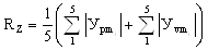 Рис. 3. Схема вимірювання нерівностей Середній крок нерівностей профілю Sm – це середнє значення кроку нерівностей профілю по середній лінії в межах базової довжини. Кроком місцевих виступів називається довжина відрізка середньої лінії між проекціями на неї двох найвищих точок сусідніх місцевих виступів профілю. Середнім кроком Si місцевих виступів профілю називається середнє значення кроку місцевих виступів в межах базової довжини. Для оцінки шорсткості поверхні в машинобудуванні одержав велике поширення висотний критерії Rz. Висота нерівностей профілю по десяти точках Rz представляє собою суму середніх абсолютних значень висот п’яти найбільших виступів профілю і глибин п’яти найбільших западин профілю в межах базової довжини, тобто (рис. 3) [2]: