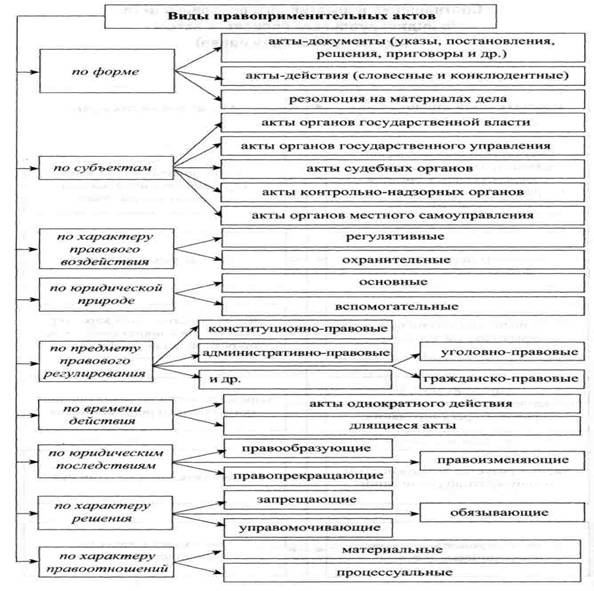 6) обеспечиваются государственным принуждением, так как речь идет о претворении воли законодателя в жизнь, если даже для этого требуется использовать силу власти (схема 1).[15] Схема 1 Следует иметь в виду, что далеко не все официальные документы представляют собой правоприменительные акты (например, разного рода справки, доверенности, квитанции, накладные, платежные поручения, дипломы, аттестаты, грамоты, удостоверения личности и т.д.), так как они не подходят под указанные выше признаки. Подобные "казенные бумаги" выступают технико-операционными средствами служебных взаимоотношений между гражданами и организациями, а также последних между собой.