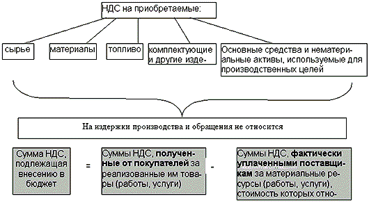 строить по следующей схеме: 1. Основные нормативные документы по изучаемому виду налога; 2. Определение изучаемого налога и общая информация по нему; 3. Плательщики налога (субъекты налога); 4. Объекты налогообложения; 5. Налоговые ставки (нормы налогового обложения); 6. Корреспонденция счетов в бухгалтерском учете предприятия, то есть взаимосвязь между бухгалтерскими счетами, возникающая в результате отражения на них операций, связанных с уплатой налогов; 7. Сроки уплаты налога; 8. Методологические особенности, связанные с начислением и уплатой того или иного вида налога; 9. Льготы по изучаемому виду налога; 10. Пояснения и комментарии по изучаемому виду налогов. 4.1. Налог на добавленную стоимость (далее – НДС) Основные нормативные документы: 1. Закон РФ от 06.12.91 N 1992 – 1 “О налоге на добавленную стоимость” (в редакции: Законов РФ от 22.05.92 N 2813-1, от 16.07.92. N 3317-1, от 22.12.92 N 4178-1, от 25.02.93 N 4554-1, от 6.03.93. N 4618-1; Федеральных законов от 11.11.94 N 37-ФЗ, от 6.12.94 N 57-ФЗ, от 23.02.95. N 25-ФЗ, от 25.04.95 N 63-ФЗ, от 23.06.95 N 94-ФЗ, от 07.08.95 N 128-ФЗ, от 22.08.95 N 151-ФЗ, от 30.11.95 N 188-ФЗ, от 27.12.95 N 211-ФЗ, от 01.04.96 N 25-ФЗ, от 22.05.96 N 45 – ФЗ, от 28.04.97 N 73-ФЗ. 2. Постановление Правительства РФ от 15.10.98 N 1203 “О продовольственных товарах, по которым применяется ставка налога на добавленную стоимость в размере 10 процентов и дополнительной импортной пошлине на сельскохозяйственные и продовольственные товары и лекарственные средства”; 3. Постановление Правительства РФ от 17. 07.98 N 788 “О товарах для детей, по которым применяется ставка налога на добавленную стоимость в размере 10 процентов”; 4. Инструкция Госналогслужбы РФ от 11.10.95 N 39 “О порядке исчисления и уплаты налога на добавленную стоимость” в редакции изменений и дополнений Госналогслужбы РФ: от 23.01.96 N 1, 14.03.96 N 2, 22.08.96 N 3, 12.03.97 N 4; 5. Приказ ГТК РФ от 6 августа 1997 г. N 478 “О применении налога на добавленную стоимость при ввозе товаров на территорию Российской Федерации"… НДС является одним из основных федеральных налогов России. НДС представляет собой разновидность налога с оборота. Впервые этот налог был разработан во Франции. Сегодня кроме России НДС применяется более чем сорока странами мира. Наиболее широкое распространение НДС получил в странах Европейского Союза. В России НДС в своем современном виде был введен с 1992 года Законом РФ “О налоге на добавленную стоимость”. [Закон Российской Федерации от 6 декабря 1991 года “О налоге на добавленную стоимость”. Ведомости Съезда народных депутатов Российской Федерации и Верховного Совета Российской Федерации. 1991г., N 52, стр. 1871.] НДС представляет собой форму изъятия в бюджет части добавленной стоимости, создаваемой на всех стадиях производства и определяемой как разница между стоимостью реализованных товаров (работ, услуг) и стоимостью материальных затрат, отнесенных на издержки производства и обращения.
