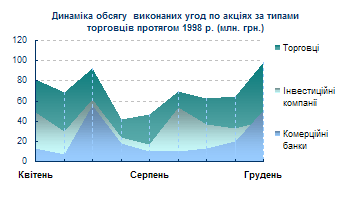 У 1999 році зберігалась тенденція щодо збільшення обсягів комерційних операцій торговців цінними паперами. Одночасно зменшилися обсяги угод з розміщення цінних паперів на ринку. Комерційні банки є найбільш крупними торговцями цінними паперами, які здійснюють переважний частину всіх видів операцій у вартісному вимірі на ринку цінних паперів. Протягом 1999 року вони відігравали найзначнішу роль на ринку цінних паперів. Більше 75% обсягу виконаних угод з купівлі-продажу цінних паперів на ринку України були здійснені комерційними банками.