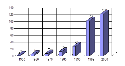 Примітка: 2000р. – прогнозні дані. Додаток № 21 [c.72] Поширеність центральних депозитаріїв цінних паперів у світі.[52]