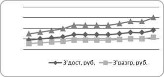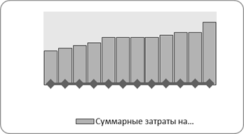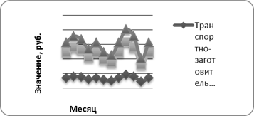 В данной таблице были рассчитаны транспортно-заготовительные расходы, которые, как видно из таблицы, складываются из расходов по доставке и расходов по разгрузке холодильников. По результатам таблицы строим график.