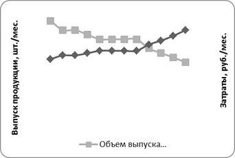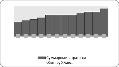 Рисунок 15 – Зависимость суммарных затрат в звене «Сбыт» от объема продукции.