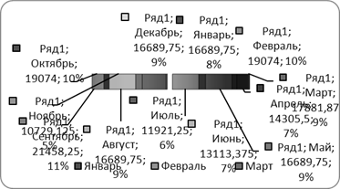 Рисунок 10 – Распределение дополнительных затрат на содержание готовой продукции по месяцам.