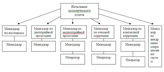 Курсовая работа: Пути совершенствования коммерческой деятельности предприятия и его экономическое обоснованиеКурсовая работа: Пути совершенствования коммерческой деятельности предприятия и его экономическое обоснованиеСодержание Введение Глава 1. Сущность и значение коммерческой деятельности 1.1 Современные тенденции развития коммерческой деятельности Глава 2. Анализ коммерческой деятельности ОАО «Московское объединение Оптика» 2.1 Организационно-экономическая характеристика предприятия 2.2 Структура предприятия 2.3 Коммерческая деятельность предприятия 2.4 Содержание коммерческой деятельности Глава 3. Пути совершенствования коммерческой деятельности, на основе салона оптики «Очкарик», г. Балашиха и его экономическое обоснование Заключение Введение В условиях рыночной экономики одним из ключевых элементов организации бизнеса является система организации коммерческой деятельности. Мнения по этому поводу у представителей науки и практиков не слишком расходятся, по крайней мере, по ключевым позициям. Однако в экономической литературе и в официальных источниках нет единого определения сущности и содержания категории «коммерческая деятельность». Существует несколько подходов к определению коммерческой деятельности, основные из которых сводятся к отождествлению коммерческой деятельности торговли, либо предпринимательской деятельности. Коммерческая деятельность оказывает непосредственное влияние на эффективное производство и воздействует на различные показатели деятельности предприятия: объем реализации товара, уровень коммерческих издержек, показатели оборачиваемости и ряд других. На современном этапе в условиях формирования в России рыночных отношений это воздействие особенно усиливается. При рассмотрении вопроса организации коммерческой деятельности на предприятии, необходимо уделить особое внимание ее составным элементам - сбыту готовой продукции, материально-техническому обеспечению, которые в последние годы приобретает новое содержание. Переход предприятий к организации производственно-хозяйственной деятельности на принципах маркетинга должен сопровождаться изменениями организационной структуры управления, характера работы, стиля мышления хозяйственного руководства. В условиях централизованного планирования производства и распределения продукции, когда товарно-денежные отношения в России играли формальную роль, коммерческие службы предприятия (служба сбыта, МТО, маркетинг) имели второстепенное значение. При переходе к рыночным отношениям значение этих служб резко возросло. В связи с этим, актуальным вопросом является организация коммерческой службы предприятия на современном этапе. Работа коммерческих служб предприятия оценивается с помощью различных показателей. Однако наиболее точно отражает эффективность коммерческой работы показатель прибыли. Поэтому определение коммерческой деятельности, как деятельности, направленной на получение прибыли, является наиболее распространенным и отражает основной принцип коммерческой деятельности. Как видно, спектр изучения вопросов организации коммерческой деятельности достаточно широк и представляет как теоретический, так и практический интерес. Объектом исследования является коммерческая деятельность Открытого ак