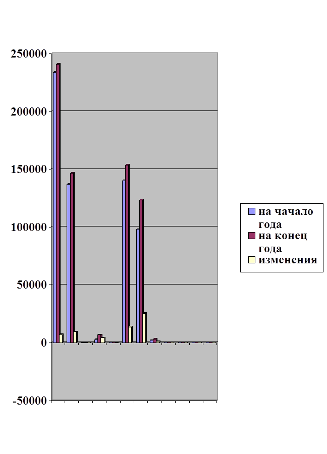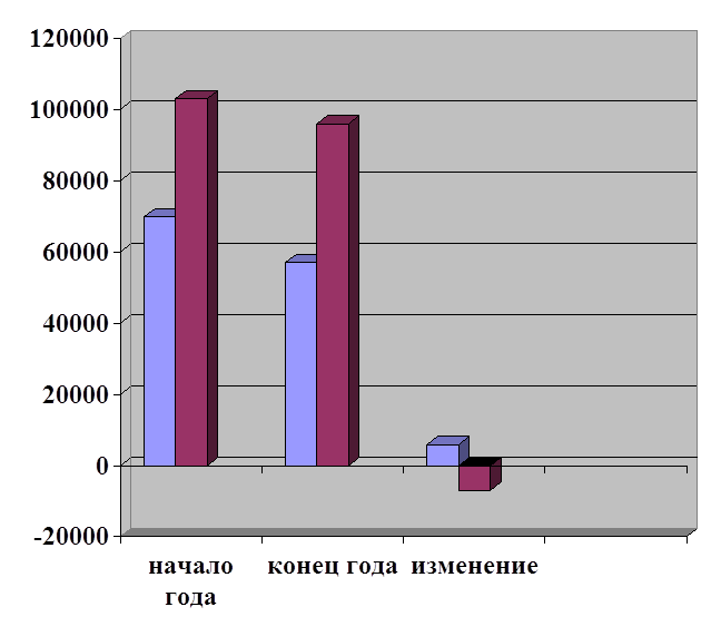 Вывод: Общая стоимость имущества на конец года увеличилась на 7158 тысяч рублей, в том числе имобилизованные активы увеличились на 10644 тысячи рублей, удельный вес их повысился на 2,65%, мобильные активы уменьшились на 3486 тысячи рублей, удельный вес понизился на 2,62%. Среди имобилизированных активов отмечено увеличение нематериальных активов на 1 тысячу рублей и увеличение основных средств на 9424 тысячи рублей, незавершенное строительство увеличилось на 1219 тысяч рублей, удельный вес повысился на 0,48%, следующие предприятия были завершены и сданы объекты. Среди мобильных актов отмечается увеличение производственных запасов на 4181 тысяч рублей, удельный вес их повысился на 1,69%, НДС увеличился на 2520 тысяч рублей, дебиторская задолженность уменьшилась на 10413 тысяч рублей. К концу года уменьшилась сумма дебиторской задолженности на 0,98%, что свидетельствует об улучшении финансовой ситуации на предприятии. Денежные средства увеличились, что является положительным фактором. 2.2 Анализ структуры и динамики источников средств. Таблица №6