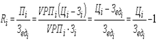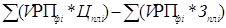 где Riпл – плановая рентабельность i-х видов продукции (отношение суммы прибыли к полной себестоимости реализованной продукции). Следует проанализировать также выполнение плана и динамику прибыли от реализации отдельных видов продукции, величина которой зависит от трех факторов первого порядка: объема продажи продукции (VРПi), себестоимости (Зедi) и среднереализационных цен (Цi). Факторная модель прибыли от реализации отдельных видов продукции имеет вид