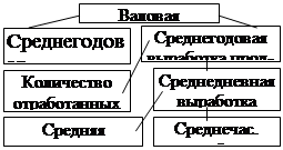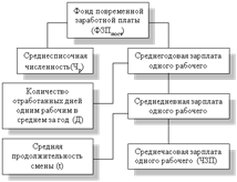 Рис. 8. Детерминированная факторная система фонда заработной платы рабочих-повременщиков Согласно этой схеме модель будет иметь следующий вид:
