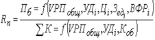 Аналогично осуществляется факторный анализ рентабельности инвестированного капитала. Балансовая сумма прибыли зависит от объема реализованной продукции (VРП), ее структуры (УДi), себестоимости (Зед), среднего уровня цен (Цi) и финансовых результатов от прочих видов деятельности, не связанных с реализацией продукции и услуг (ВФР). Среднегодовая сумма основного и оборотного капитала (