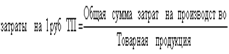 производства Рис.10. Зависимость себестоимости единицы продукции от объёма её производства На графиках хорошо видно, что переменные расходы в себестоимости всего выпуска растут пропорционально изменению объёма производства, а в себестоимости единицы продукции они составляют постоянную величину. Величина постоянных расходов, наоборот, не изменяется с увеличением объёма производства в общей сумме затрат, а в расчёте на единицу продукции затраты уменьшаются пропорционально его росту. Все вышеизложенные положения используем при проведении анализа себестоимости. Анализ себестоимости проводят по следующим направлениям: Источники информации: данные статистической отчётности, ф.№5-з “Отчёт о затратах на производство и реализацию продукции”, данные бухгалтерского учёта: синтетические и аналитические счета, отражающие затраты материальных, трудовых и денежных средств, плановые и отчётные калькуляции себестоимости продукции и пр. Анализ затрат на рубль товарной продукции Наиболее обобщающим показателем себестоимости продукции, выражающим её прямую связь с прибылью, является уровень затрат на 1 рубль товарной продукции:
