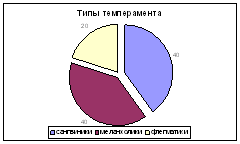 Рис.5. Результаты диагностики характерологических особенностей по методике Айзенка По типу темперамента наши испытуемые разделяются на следующие группы: сангвиники: №№ 1, 7, 9,10; меланхолики: 2, 4, 6, 8; флегматики: 3, 5 (рис.6).