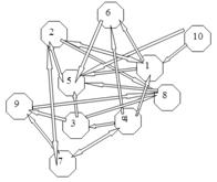 Рис.3. Итак, в результате социометричского исследования были получены следующие данные: - Наибольшее число положительных выборов получил испытуемый №5 (см. таб.1), - Наименьшее количество положительных выборов у испытуемого № 1; - Отсутствие выборов у испытуемого № 2. На основе построенной социограммы (рис.3.) мы сделали вывод, что в коллективе существуют взаимные предпочтения. Так мы видим взаимные положительные связи у испытуемых: 1-2, 1-5, 2-5; 3-6, 4-7, 8-9, 7-9. Так же мы видим взаимные отрицательные связи у испытуемых: 1-4, 2-7. Таким образом, на основе взаимных положительных выборов, в данном коллективе определяется группировка между испытуемыми 1,2 и 5. Для того, чтобы социально-психологическая совместимость в данном коллективе была наиболее оптимальной, рекомендуется комплектовать рабочие смены следующим образом: 1 бригада: испытуемые №№ 1, 2, 5, 6, 10. 2 бригада: испытуемые №№ 4, 7, 8, 9, 3. Далее мы выяснили, какими индивидуально-психологическими особенностями обладают члены данного коллектива. Для этой цели мы использовали характерологический опросник Айзенка. Протоколы исследования даны в приложении. По результатам исследования были получены следующие данные:
