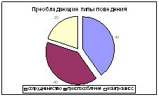 Рис.6. Результаты диагностики характерологических особенностей по методике Айзенка Таким образом, наши испытуемые имеют различные типы темперамента и различные психологические особенности. Далее мы исследовали типы поведения в конфликтных ситуациях по методике Томаса. Преобладающим типом поведения считают сотрудничество испытуемые №№ 5, 7, 9, 10; приспособление – испытуемые №№1, 2, 4, 8; компромисс №3,6 (рис.7).